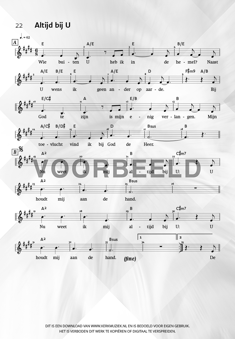 LET OP: U dient ZELF de liedbestanden te downloaden en af te drukken. Wij sturen u dus géén bladmuziek per post toe! U kunt na een geslaagde betaling direct zelf aan de slag.