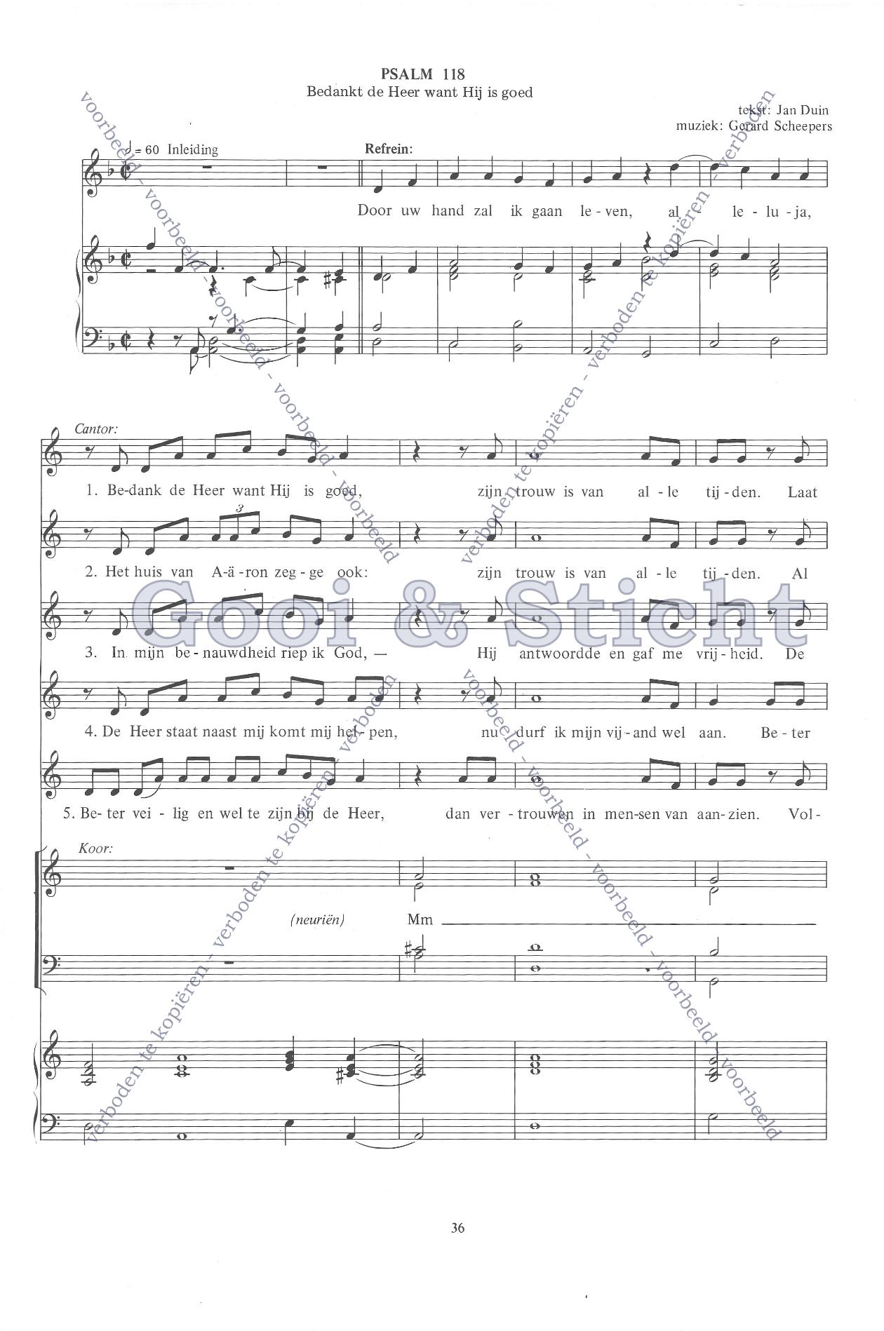 | Aanhef (eerste regel) | Bedankt de heer want hij is goed |