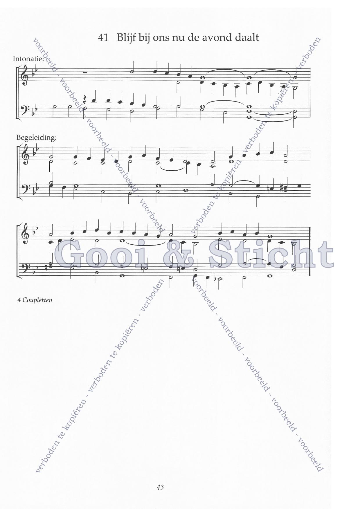 | Refrein | Blijf bij ons nu de avond daalt |