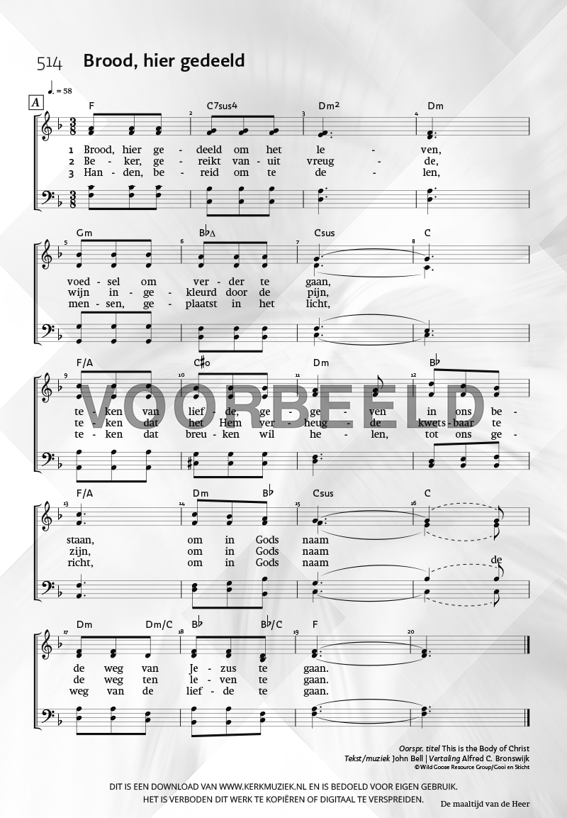 | Aanhef (eerste regel) | Brood, hier gedeeld |