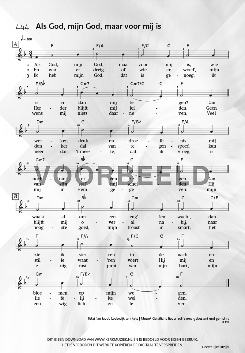 | Aanhef (eerste regel) | Als God, mijn God, maar voor mij is |