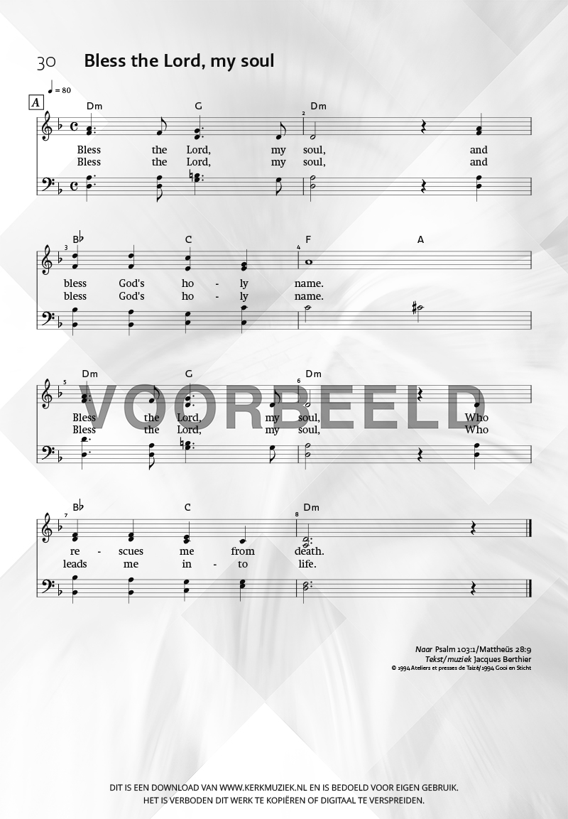 | Aanhef (eerste regel) | Bless the Lord, my soul |
