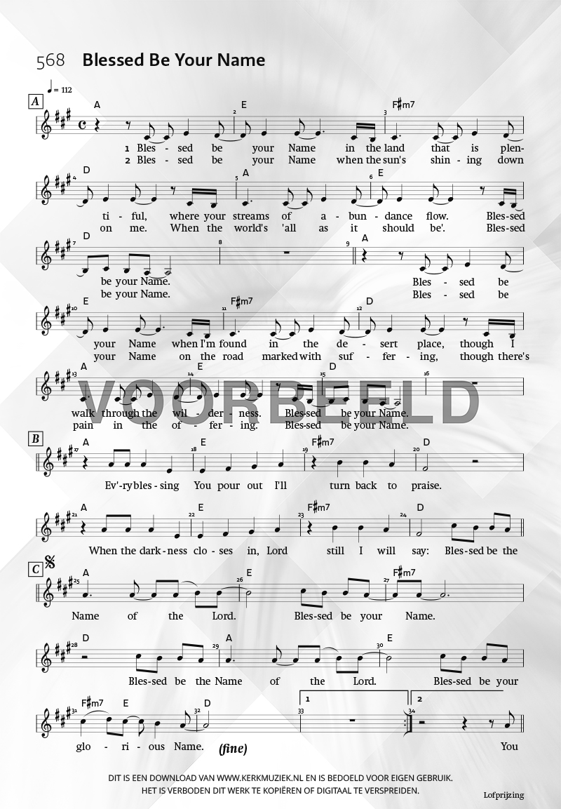 | Aanhef (eerste regel) | Blessed Be Your Name |
