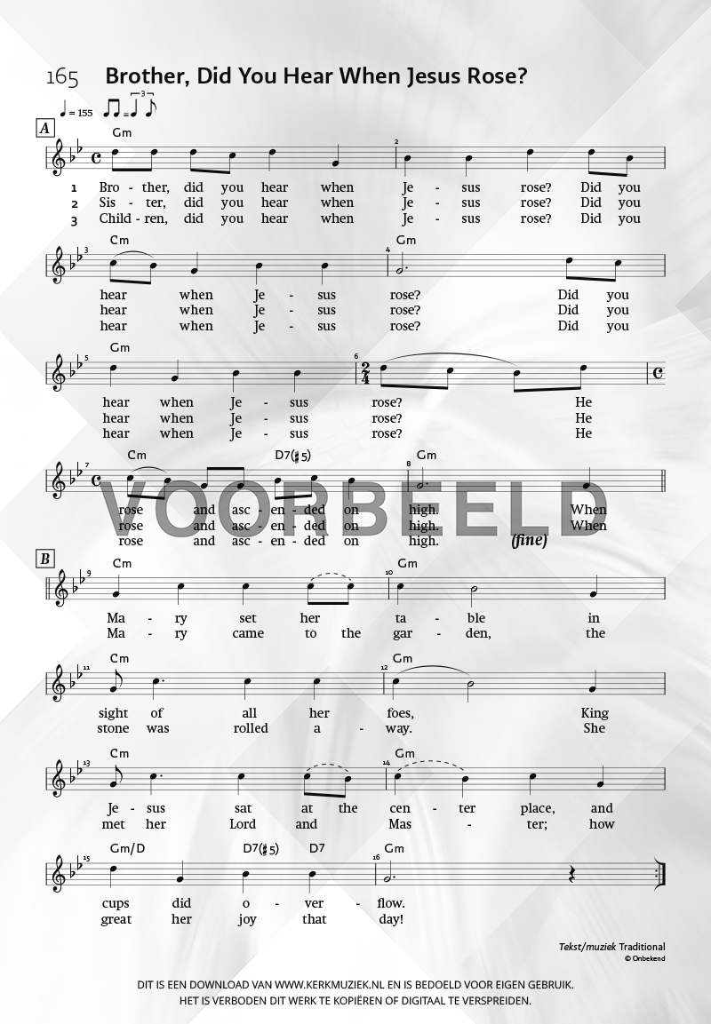 | Aanhef (eerste regel) | Brother, Did You Hear When Jesus Rose? |