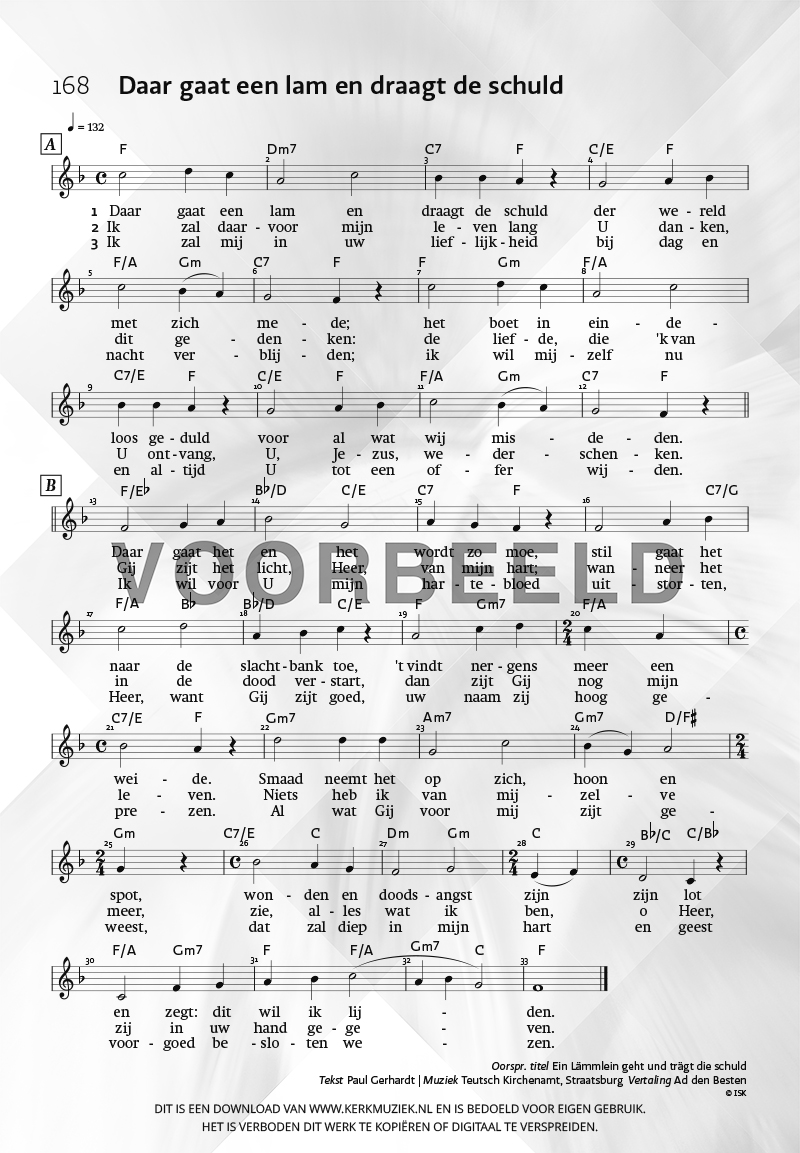 | Aanhef (eerste regel) | Daar gaat een lam en draagt de schuld |