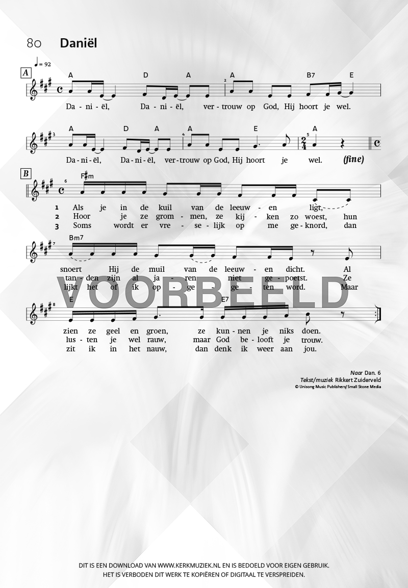 | Aanhef (eerste regel) | Daniël, vertrouw op God |