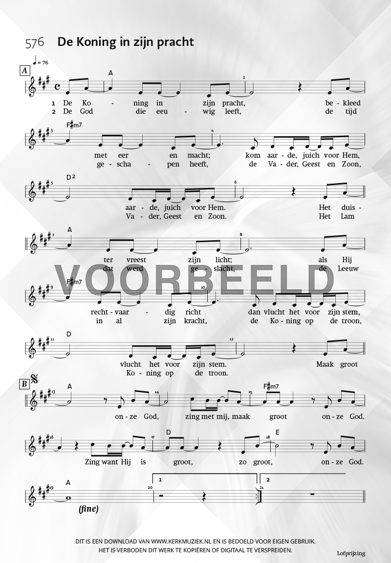 | Aanhef (eerste regel) | De Koning in zijn pracht |