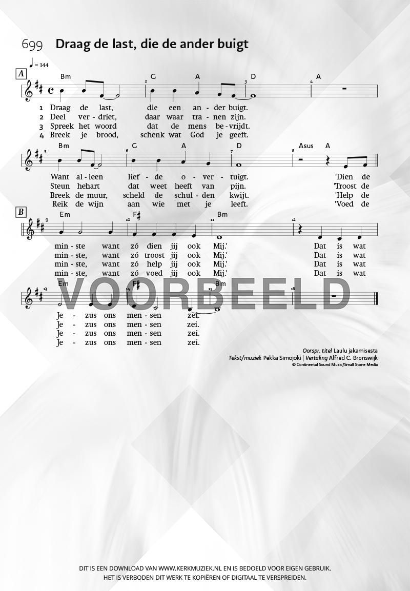 | Aanhef (eerste regel) | Draag de last, die de ander buigt |