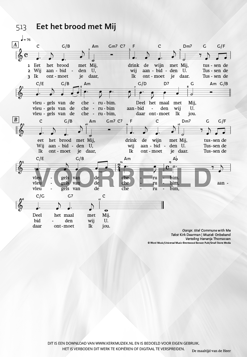 | Aanhef (eerste regel) | Eet het brood met Mij |