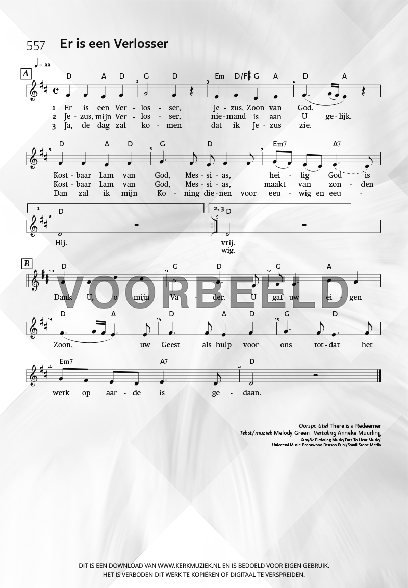 | Aanhef (eerste regel) | Er is een Verlosser |