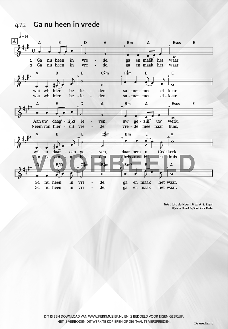 | Aanhef (eerste regel) | Ga nu heen in vrede |
