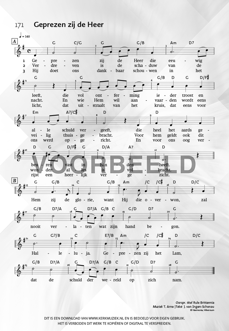 | Aanhef (eerste regel) | Geprezen zij de Heer |