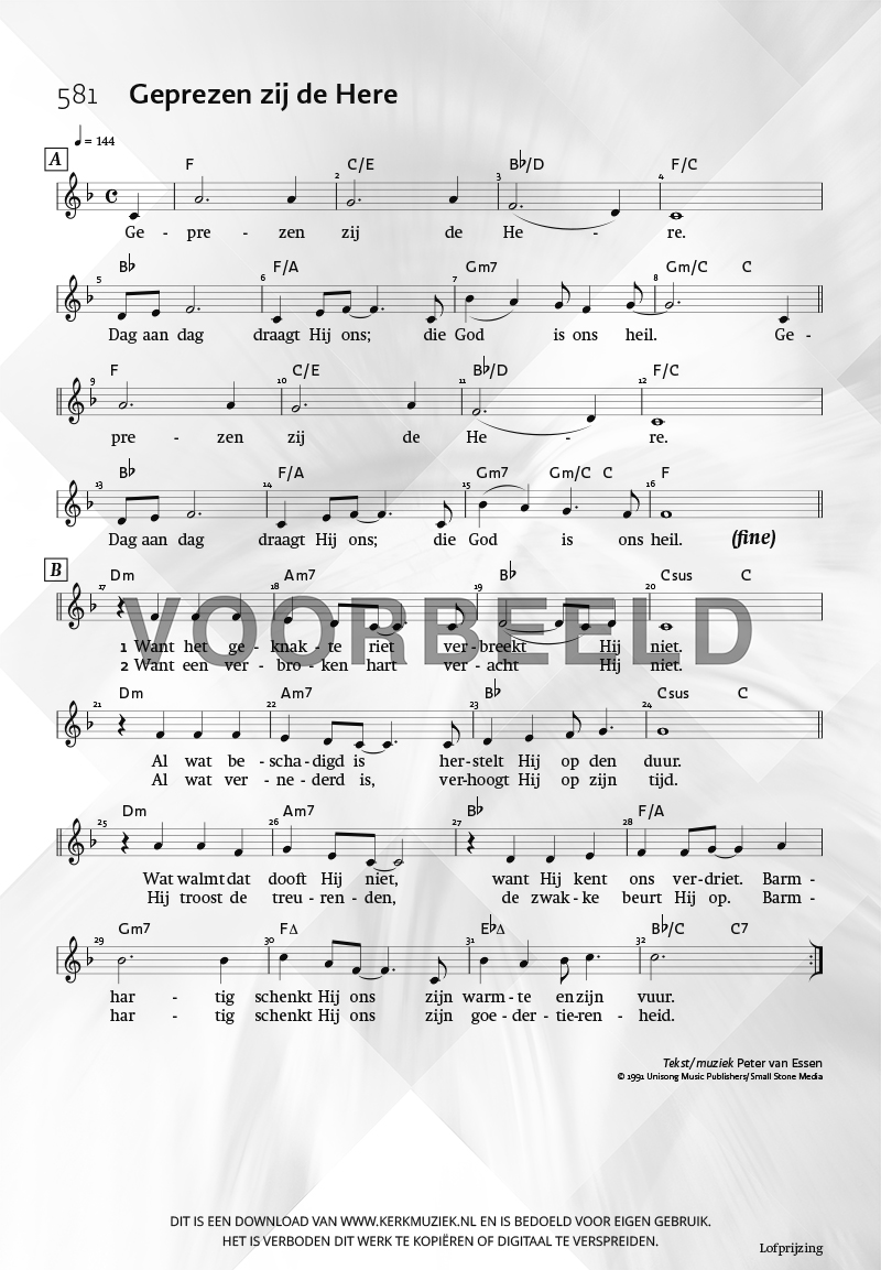 | Aanhef (eerste regel) | Geprezen zij de Here |