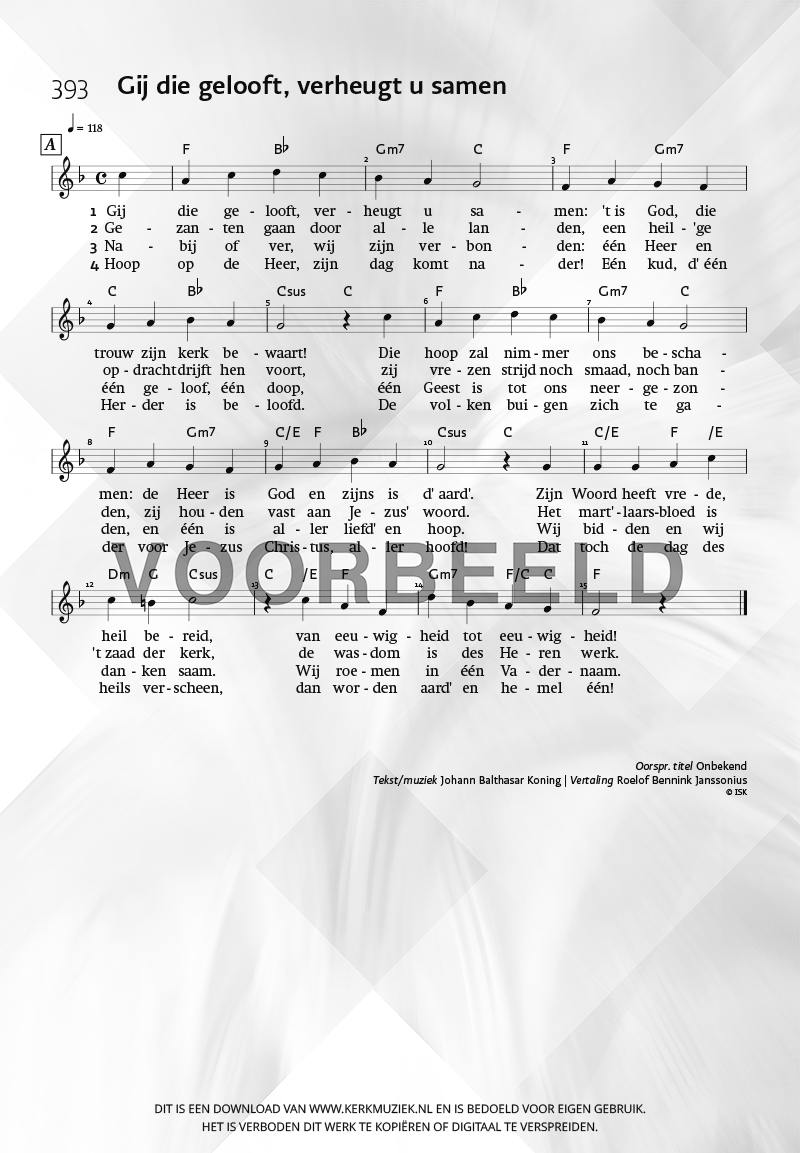 | Aanhef (eerste regel) | Gij die gelooft, verheugt u samen |