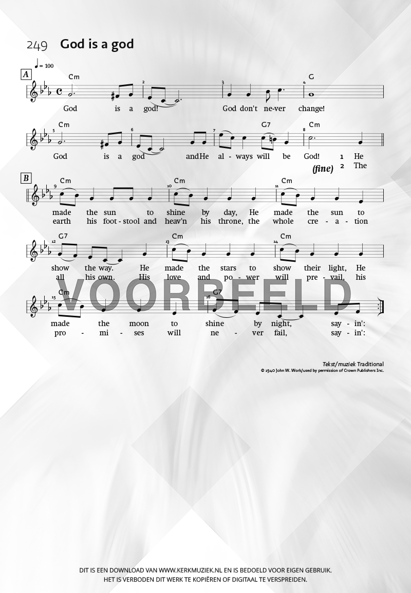 | Aanhef (eerste regel) | God is a god |