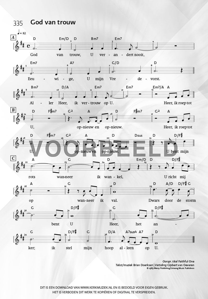 | Aanhef (eerste regel) | God van trouw |