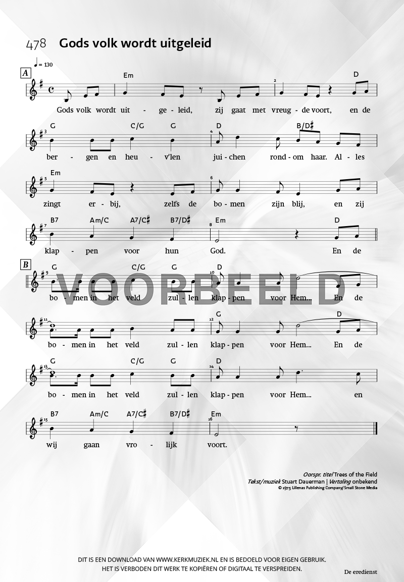 | Aanhef (eerste regel) | Gods volk wordt uitgeleid |