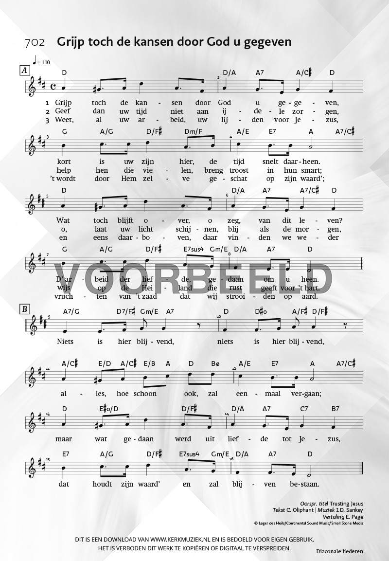| Aanhef (eerste regel) | Grijp toch de kansen door God u gegeven |