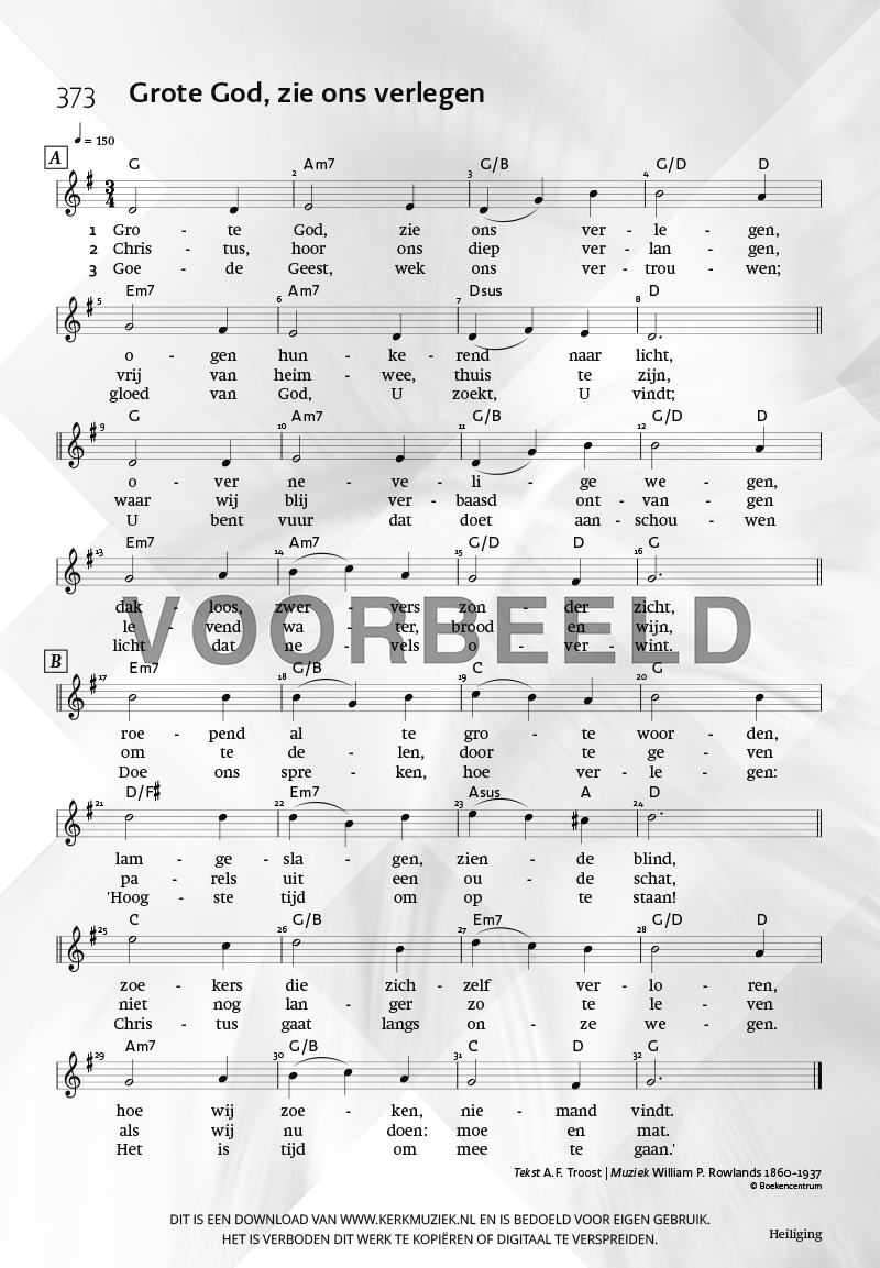 | Aanhef (eerste regel) | Grote God, zie ons verlegen |