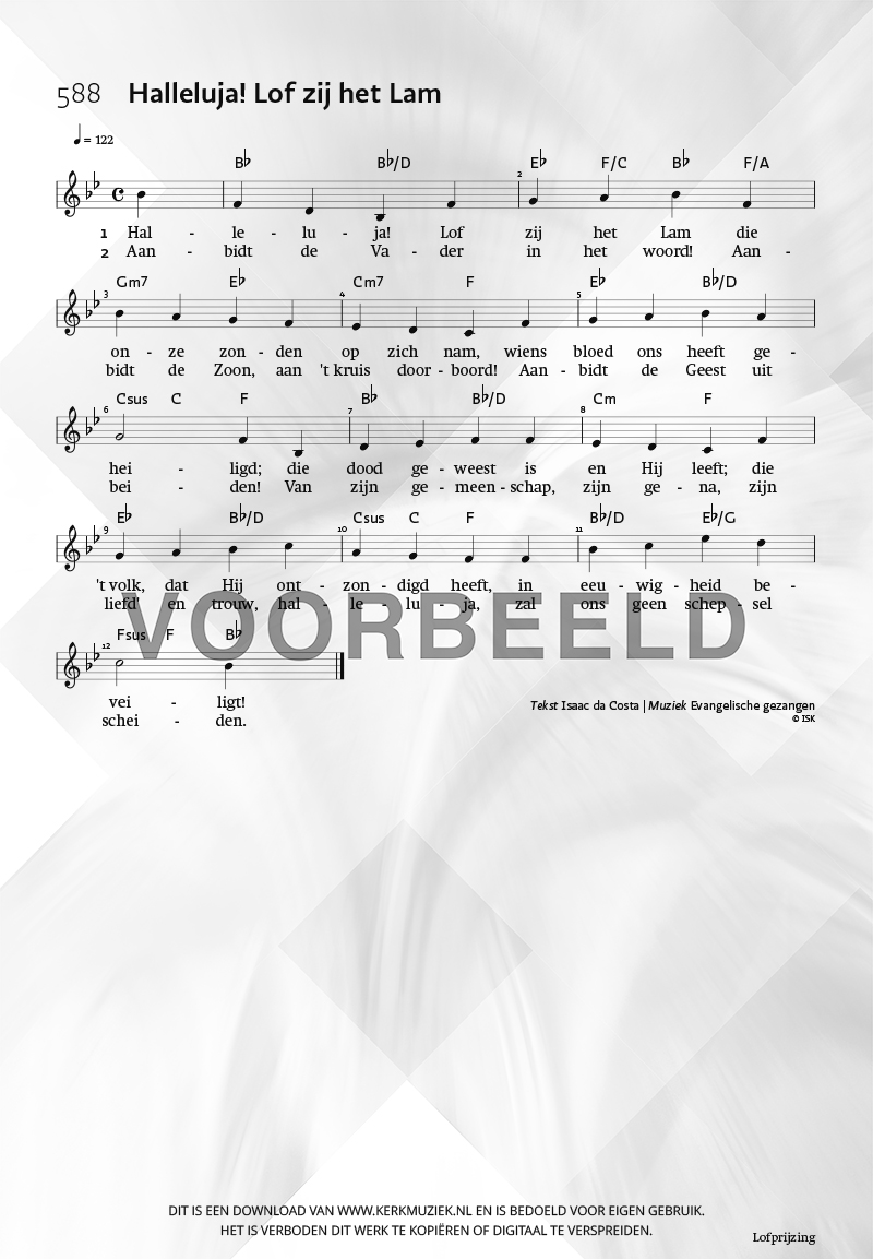 | Aanhef (eerste regel) | Halleluja! Lof zij het Lam |