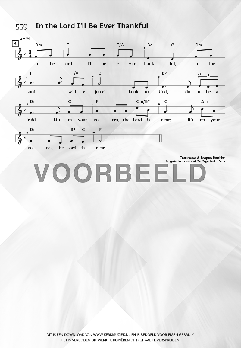 | Aanhef (eerste regel) | In the Lord I’ll Be Ever Thankful |