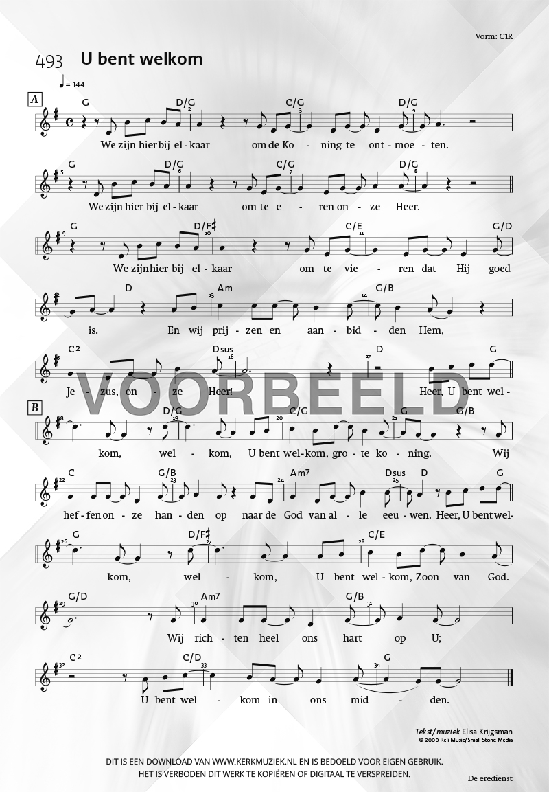 LET OP: U dient ZELF de liedbestanden te downloaden en af te drukken. Wij sturen u dus géén bladmuziek per post toe! U kunt na een geslaagde betaling direct zelf aan de slag.