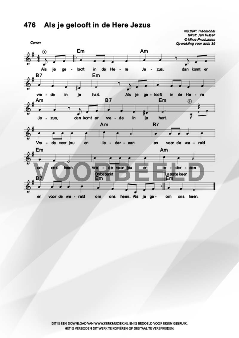 LET OP: U dient ZELF de liedbestanden te downloaden en af te drukken. Wij sturen u dus géén bladmuziek per post toe! U kunt na een geslaagde betaling direct zelf aan de slag.