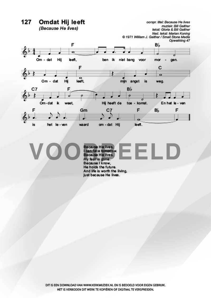 | Aanhef (eerste regel) | Omdat Hij leeft |