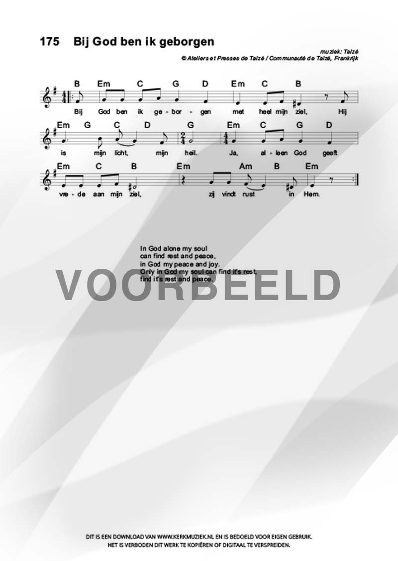 | Aanhef (eerste regel) | Bij God ben ik geborgen |