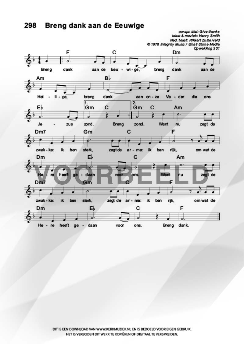 | Aanhef (eerste regel) | Breng dank aan de Eeuwige |
