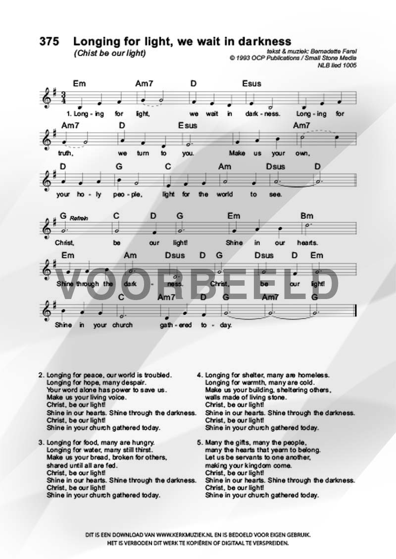 | Aanhef (eerste regel) | Longing for light, we wait in darkness |