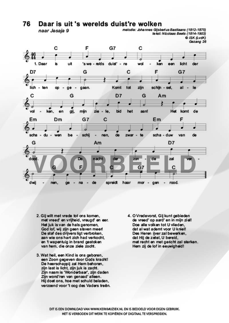 | Aanhef (eerste regel) | Daar is uit 's werelds duist're wolken |