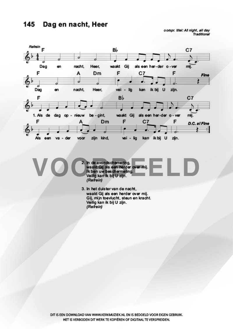 | Refrein | Dag en nacht, Heer |