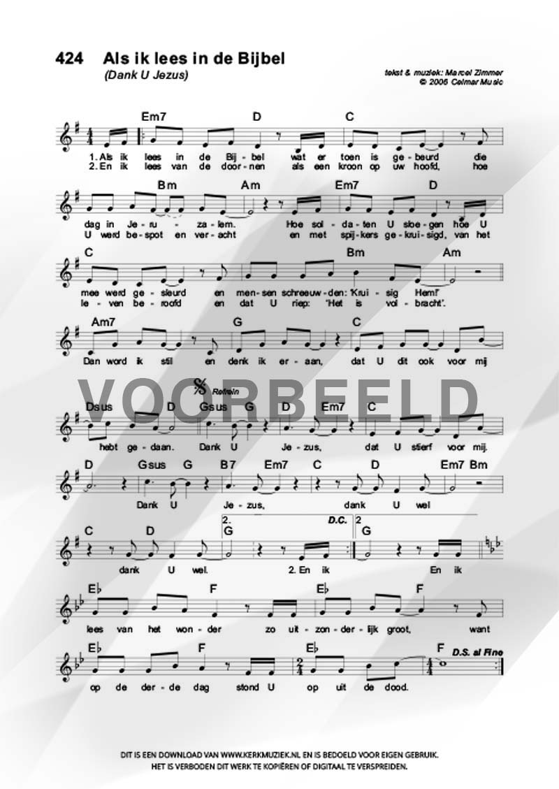 | Aanhef (eerste regel) | Als ik lees in de Bijbel |