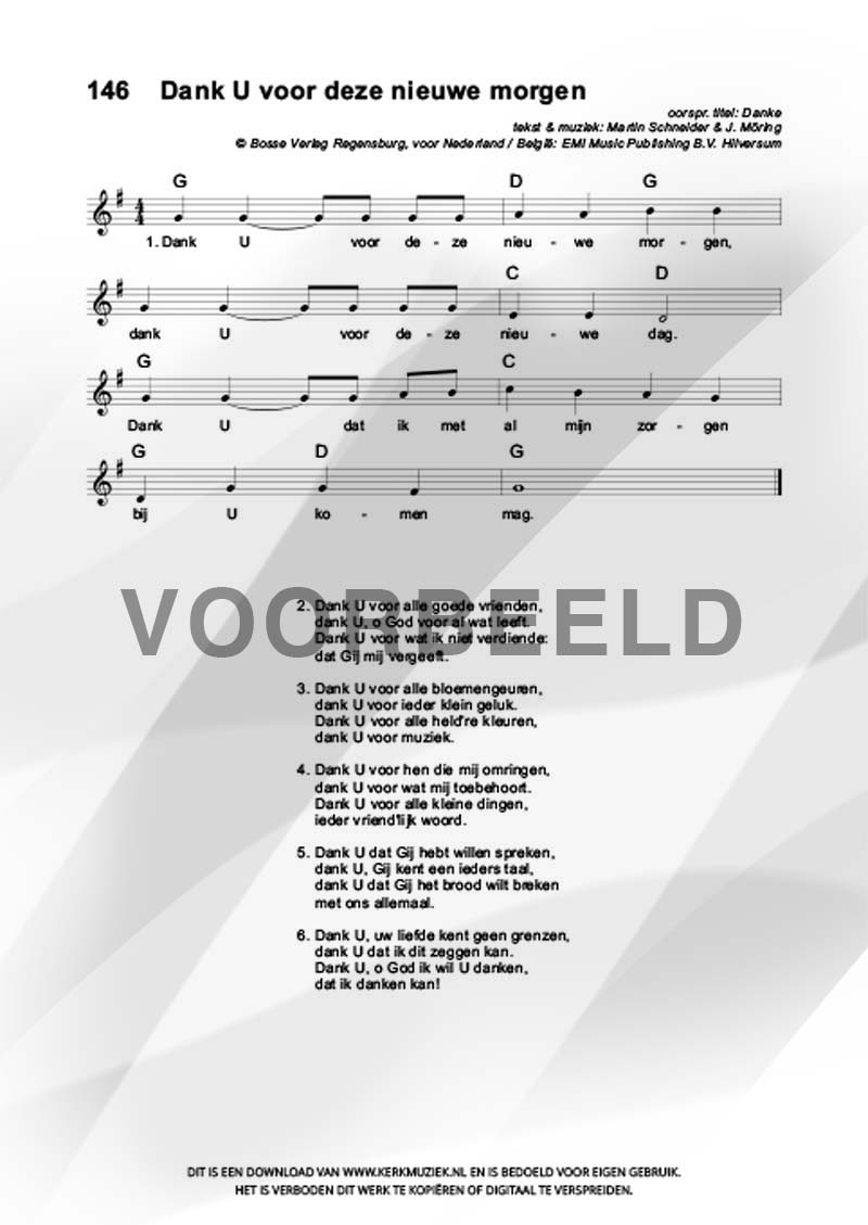 | Aanhef (eerste regel) | Dank U voor deze nieuwe morgen |