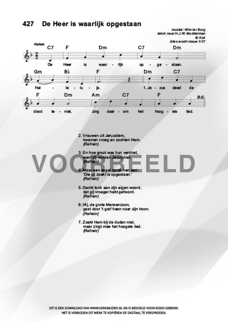 KOORZETTINGEN (boven de € 10,=) mag u maximaal 30 maal kopiëren voor uw koorleden.
