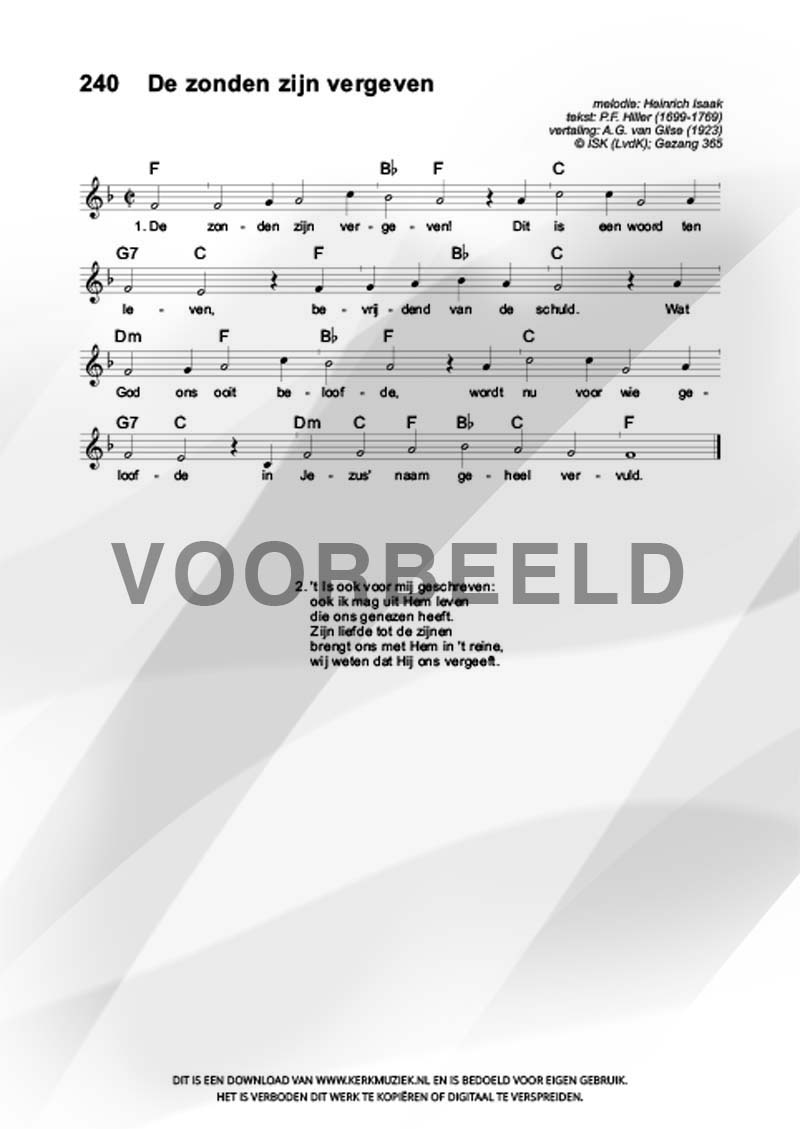 | Aanhef (eerste regel) | De zonden zijn vergeven |