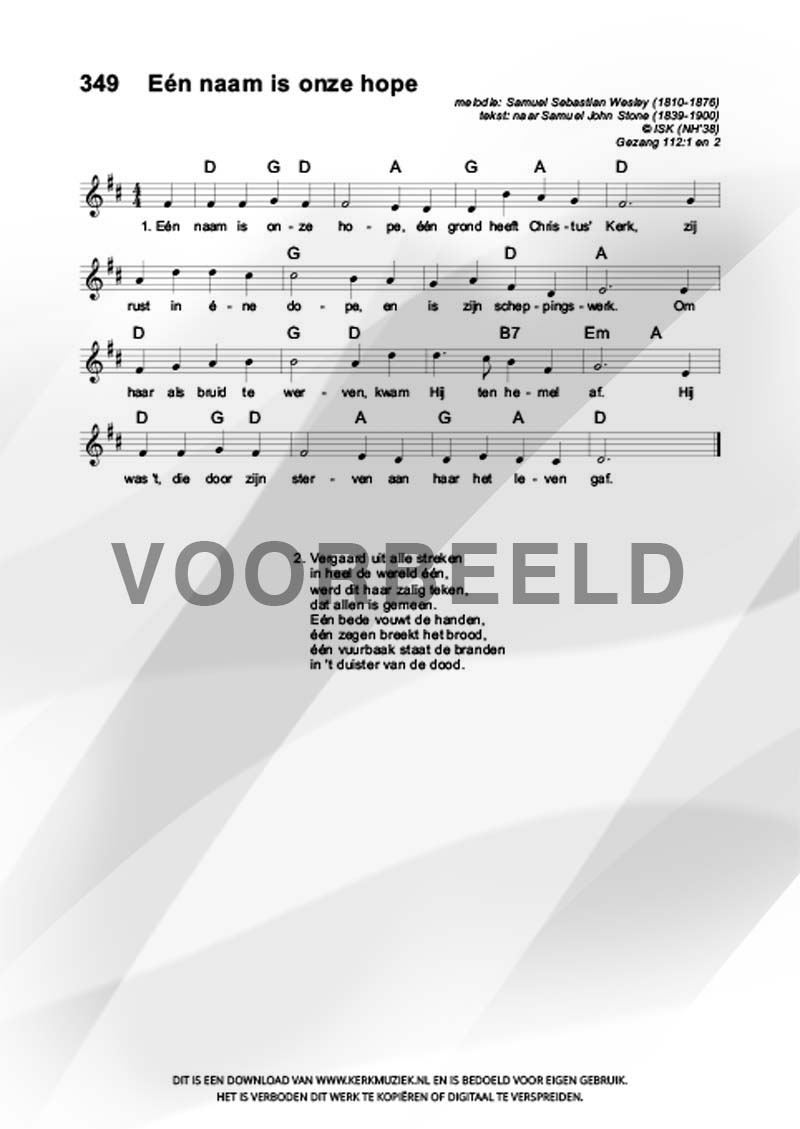 | Aanhef (eerste regel) | Eén naam is onze hope |