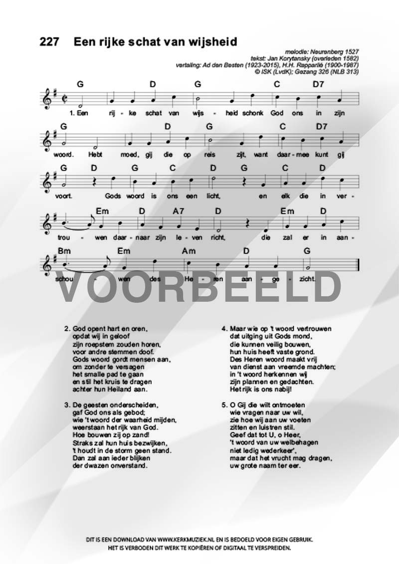 | Aanhef (eerste regel) | Een rijke schat van wijsheid |