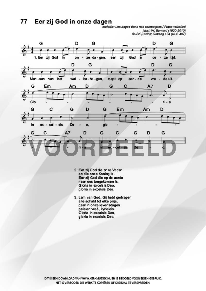 | Aanhef (eerste regel) | Eer zij God in onze dagen |