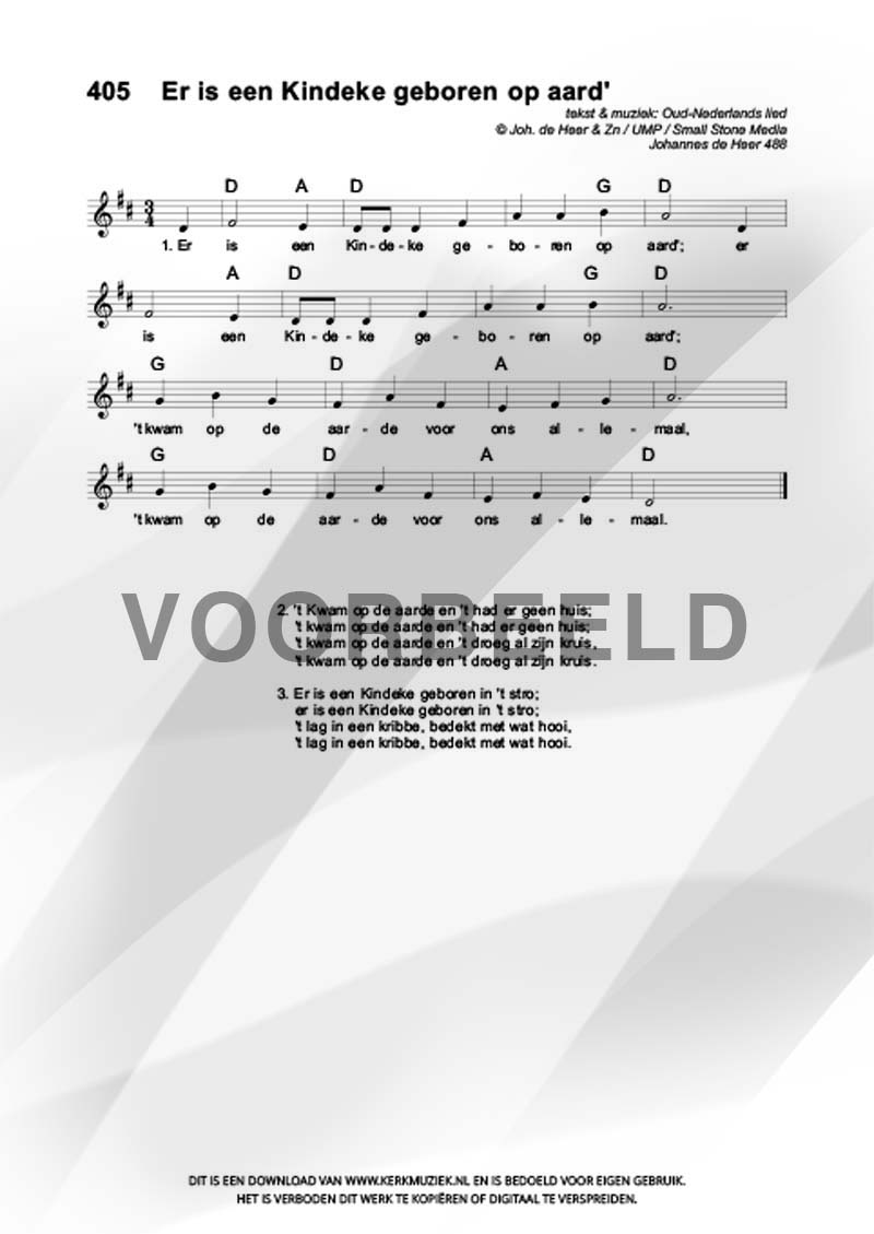 | Aanhef (eerste regel) | Er is een Kindeke geboren op aard' |