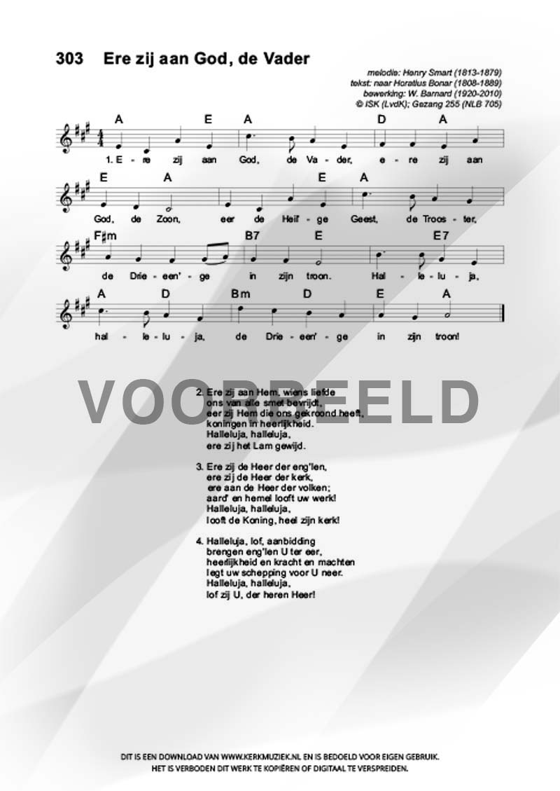 | Aanhef (eerste regel) | Ere zij aan God, de Vader |