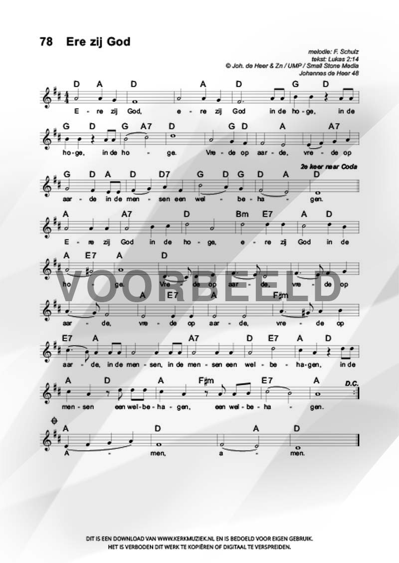 LET OP: U dient ZELF de liedbestanden te downloaden en af te drukken. Wij sturen u dus géén bladmuziek per post toe! U kunt na een geslaagde betaling direct zelf aan de slag.