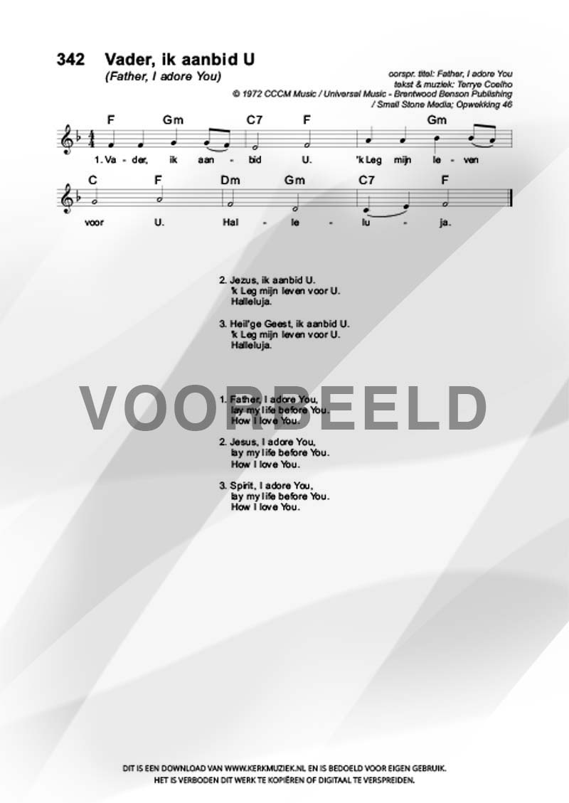 | Aanhef (eerste regel) | Vader, ik aanbid U |