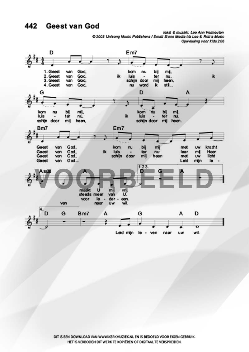 | Aanhef (eerste regel) | Geest van God |