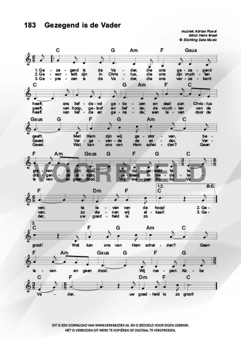 LET OP: U dient ZELF de liedbestanden te downloaden en af te drukken. Wij sturen u dus géén bladmuziek per post toe! U kunt na een geslaagde betaling direct zelf aan de slag.