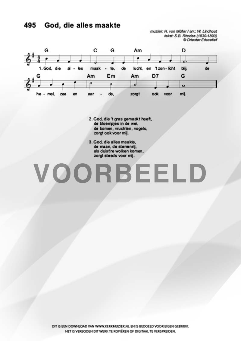 | Aanhef (eerste regel) | God die alles maakte |