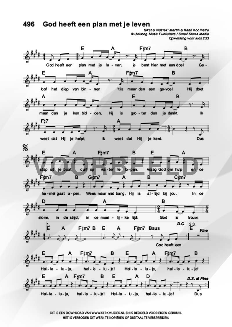 | Aanhef (eerste regel) | God heeft een plan met je leven |