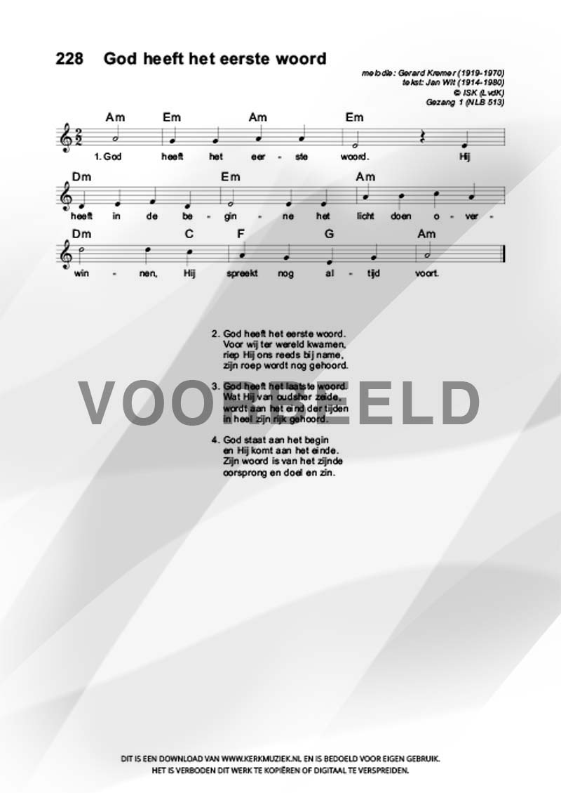| Aanhef (eerste regel) | God heeft het eerste woord |