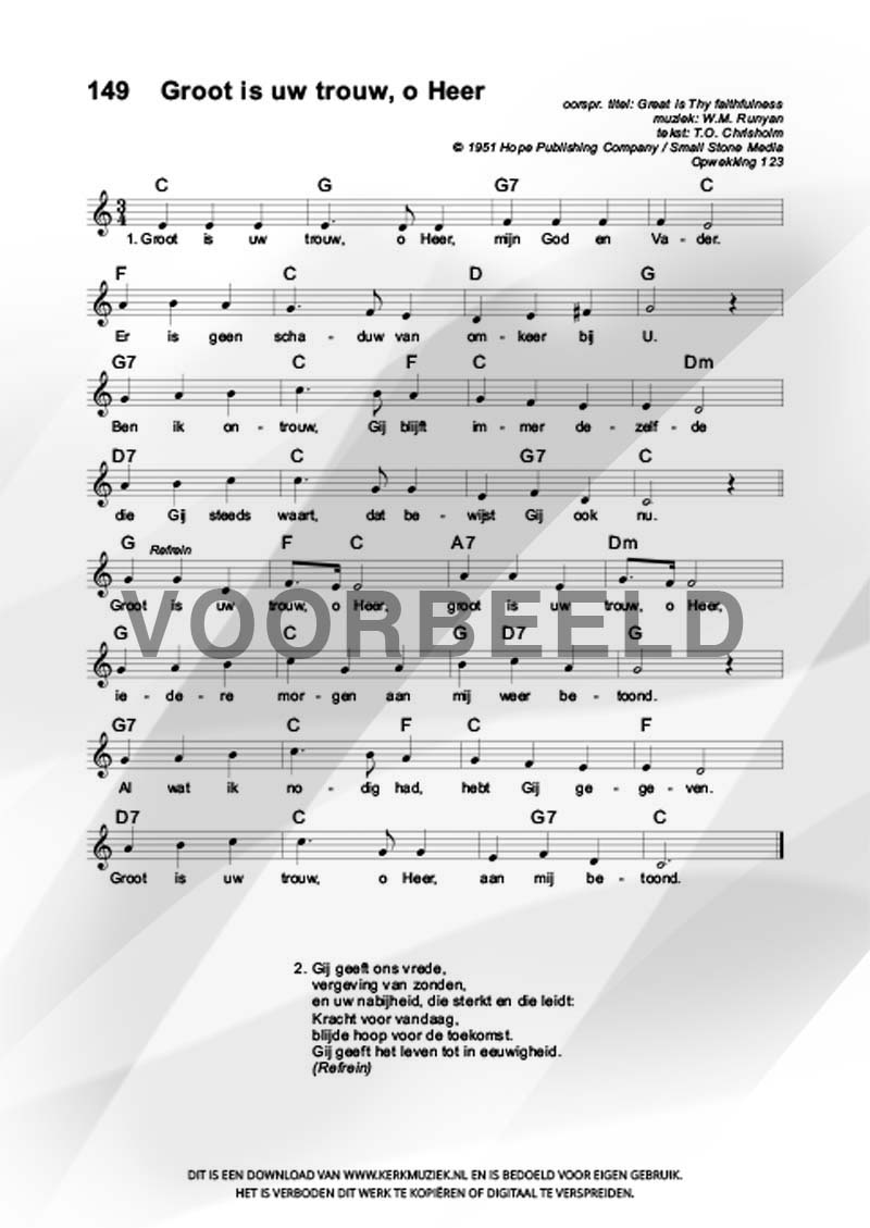 | Refrein | Groot is uw trouw, o Heer |